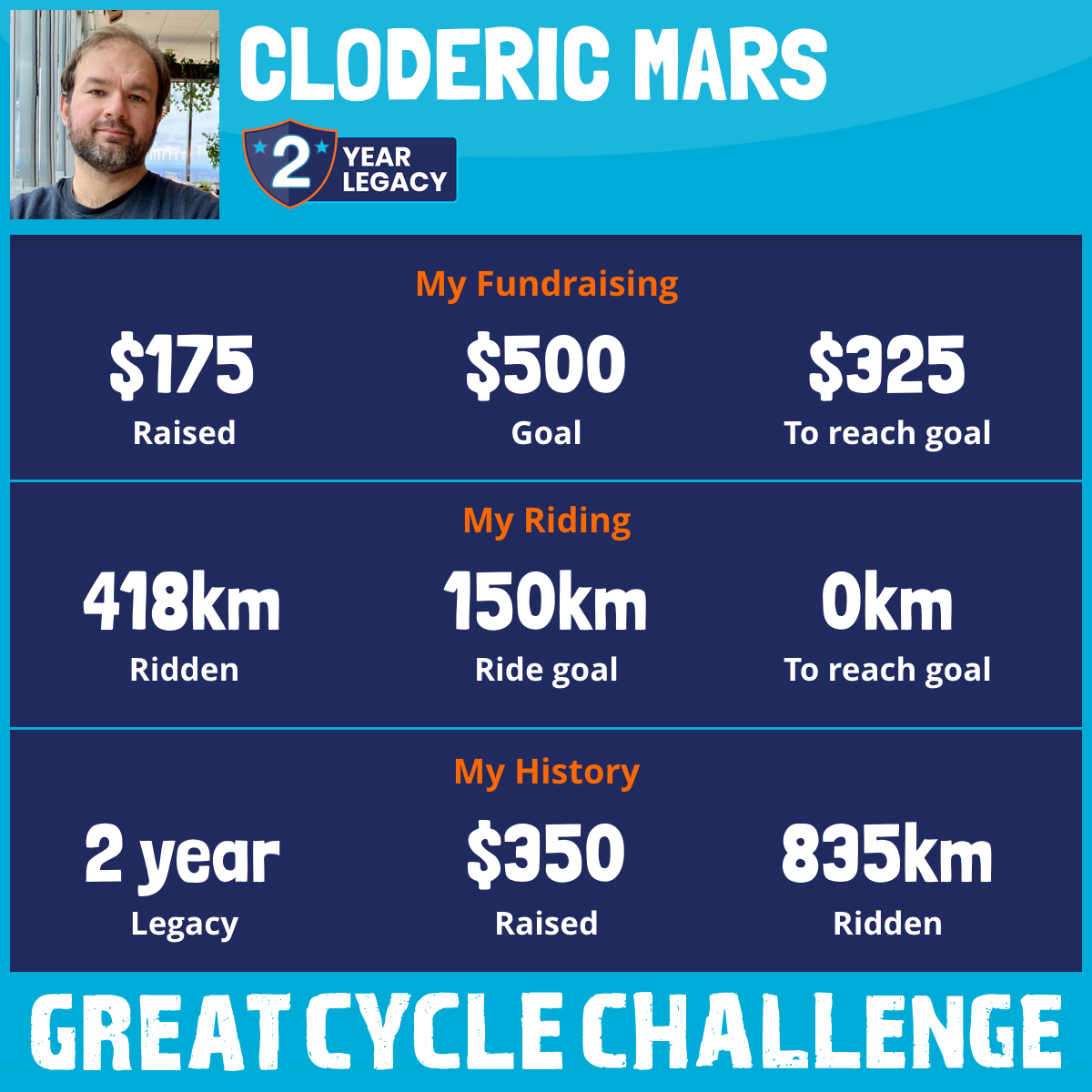 418 km Ridden$175 Raised2025