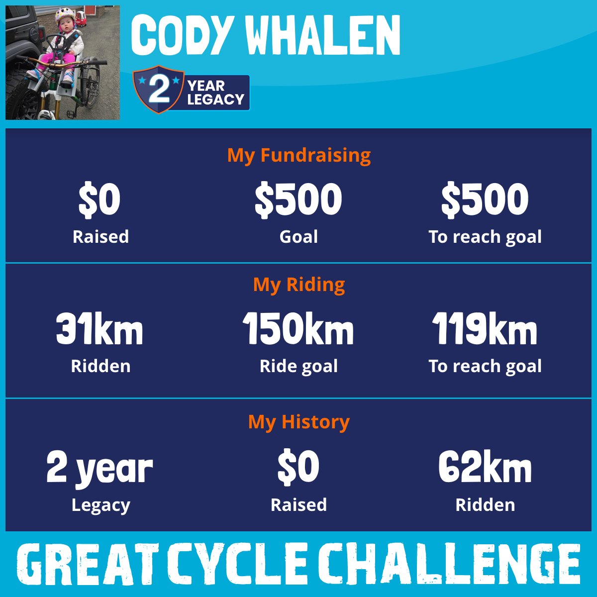 This August, I am taking part in the Great Cycle Challenge to fight kids' cancer!