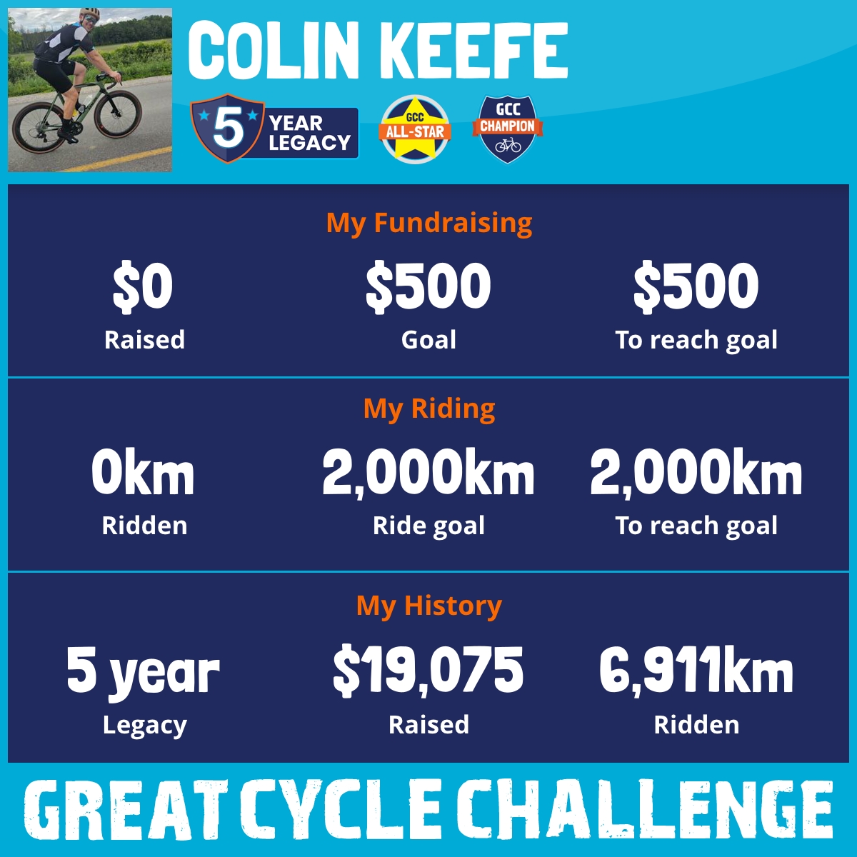 Fifth year participating in the Great Cycle Challenge in the month of August.
