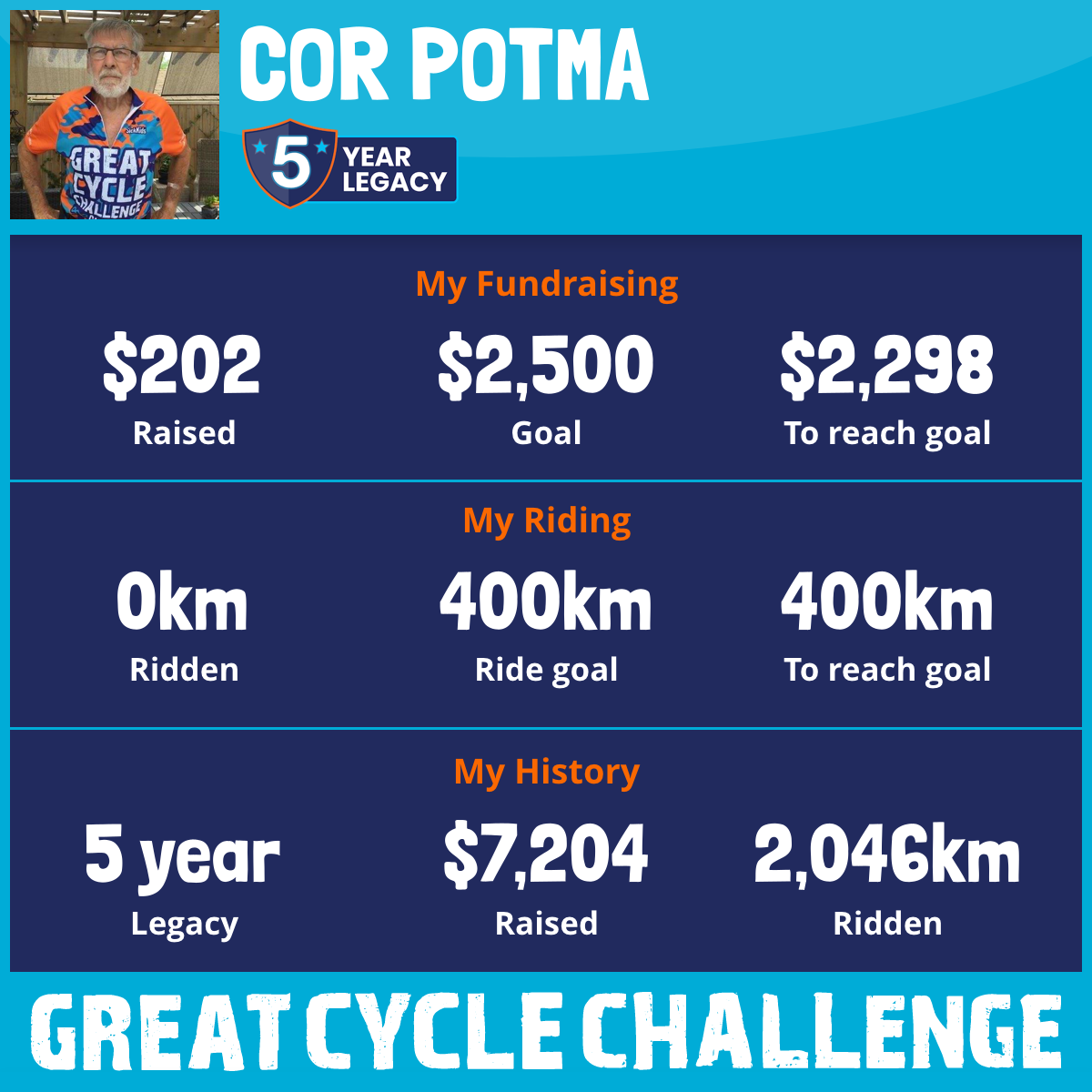 404 km Ridden$1,374 Raised2021