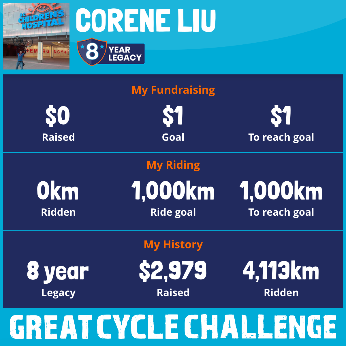 I am riding 1,000 km to fight kids' cancer and save little lives. Please sponsor me to support my challenge!