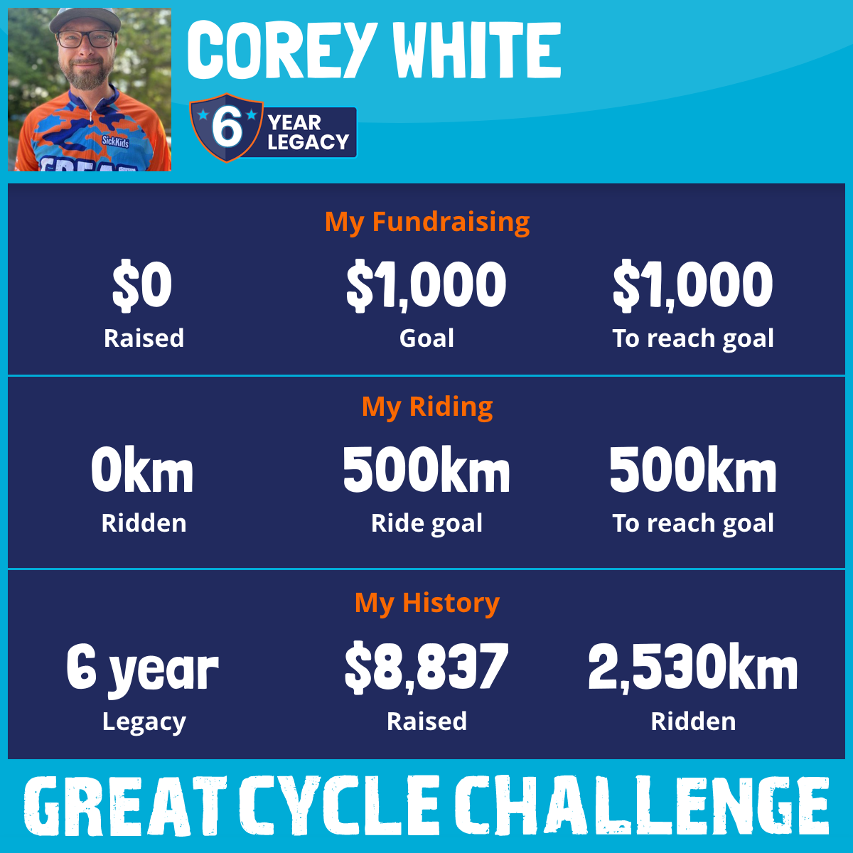 1,161 km Ridden$2,538 Raised2026
