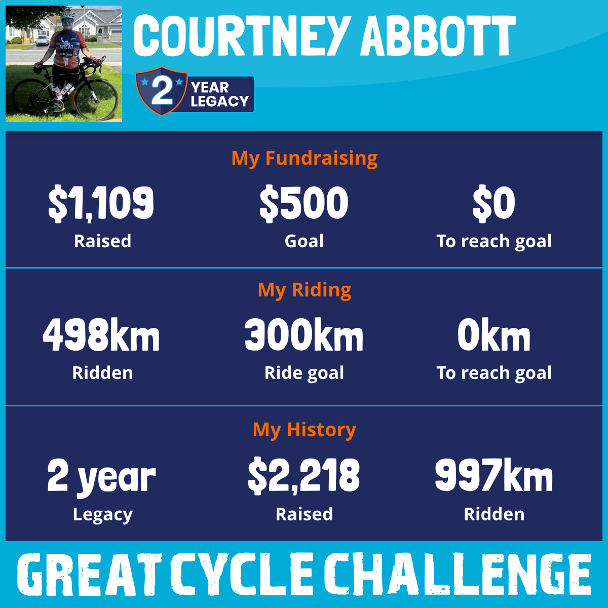 498 km Ridden$1,109 Raised2026