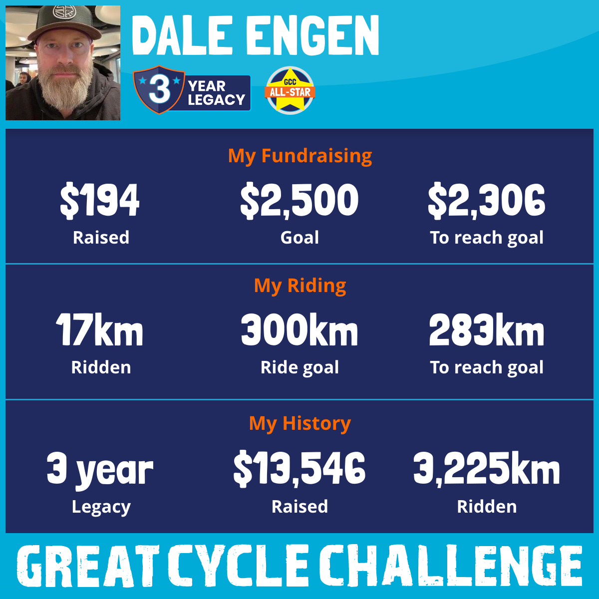 1,006 km Ridden$4,256 Raised2021