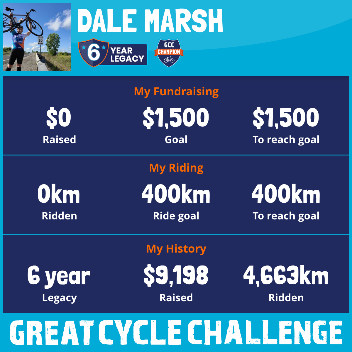 819 km Ridden$2,504 Raised2023
