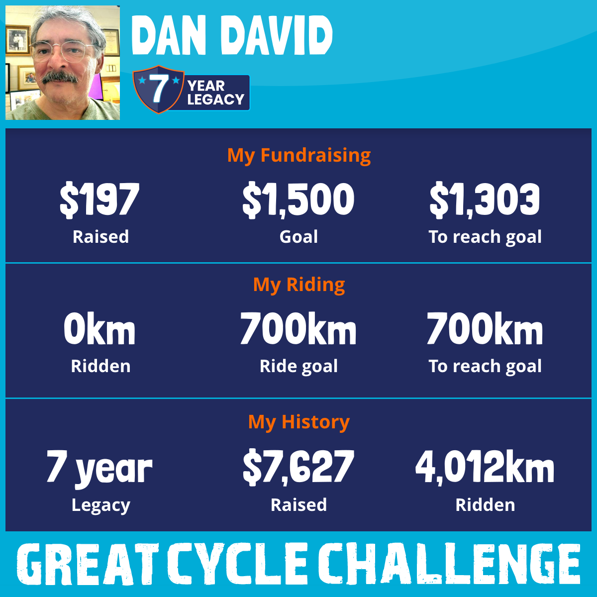 1,203 km Ridden$2,797 Raised2020