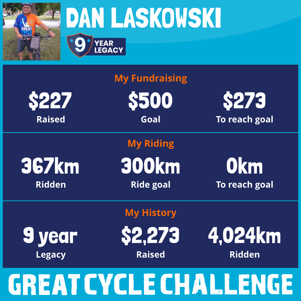 367 km Ridden$227 Raised2026