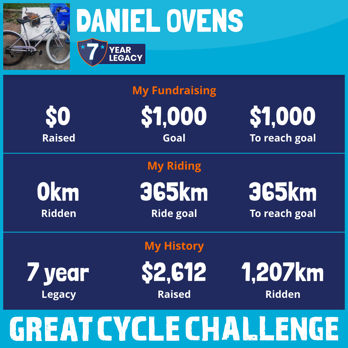 I am riding 365 km in memory of my aunty, Build bicycle, improve physical fitness, and extend range of travel beyond foot/durham transit. Please sponsor me and support my challenge to fight kids' cancer and save little lives.