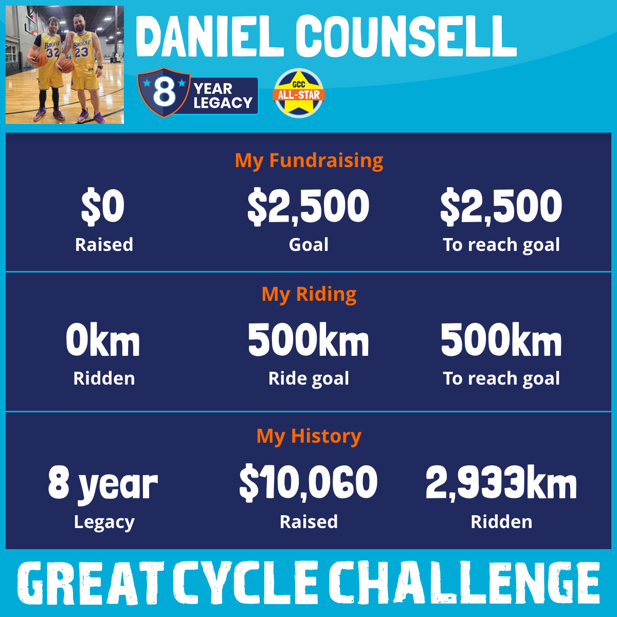 501 km Ridden$2,503 Raised2023