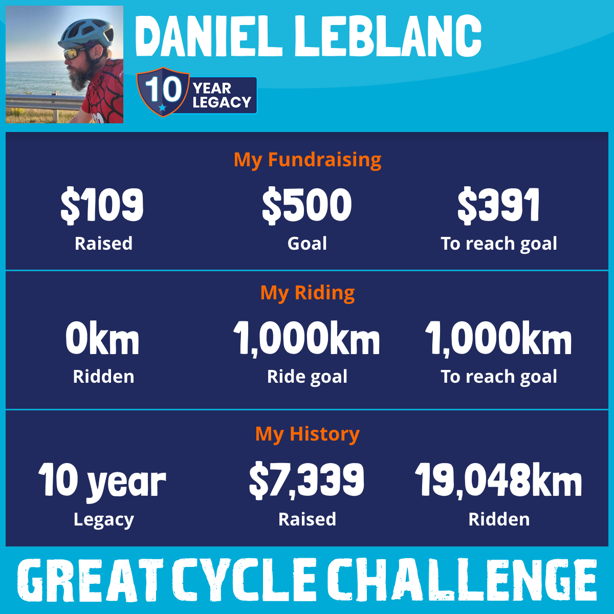 3,589 km Ridden$2,900 Raised2020