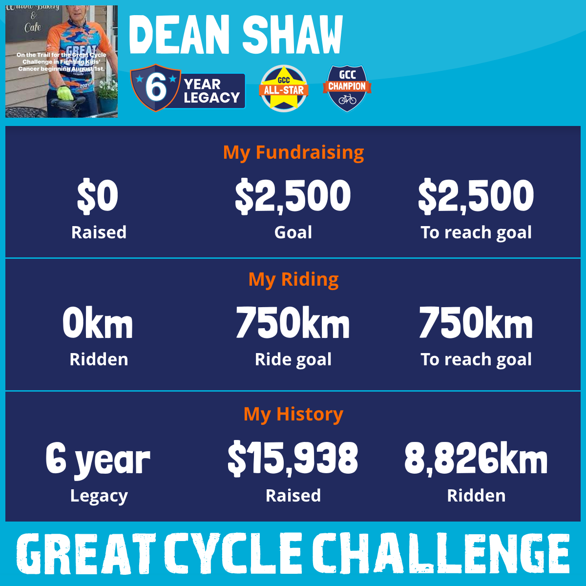 1,711 km Ridden$3,501 Raised2023