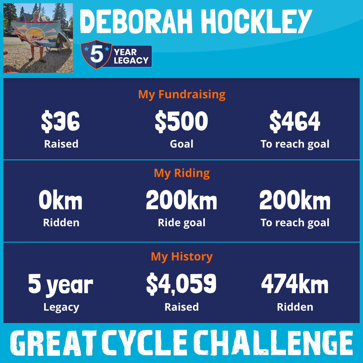 213 km Ridden$1,418 Raised2020