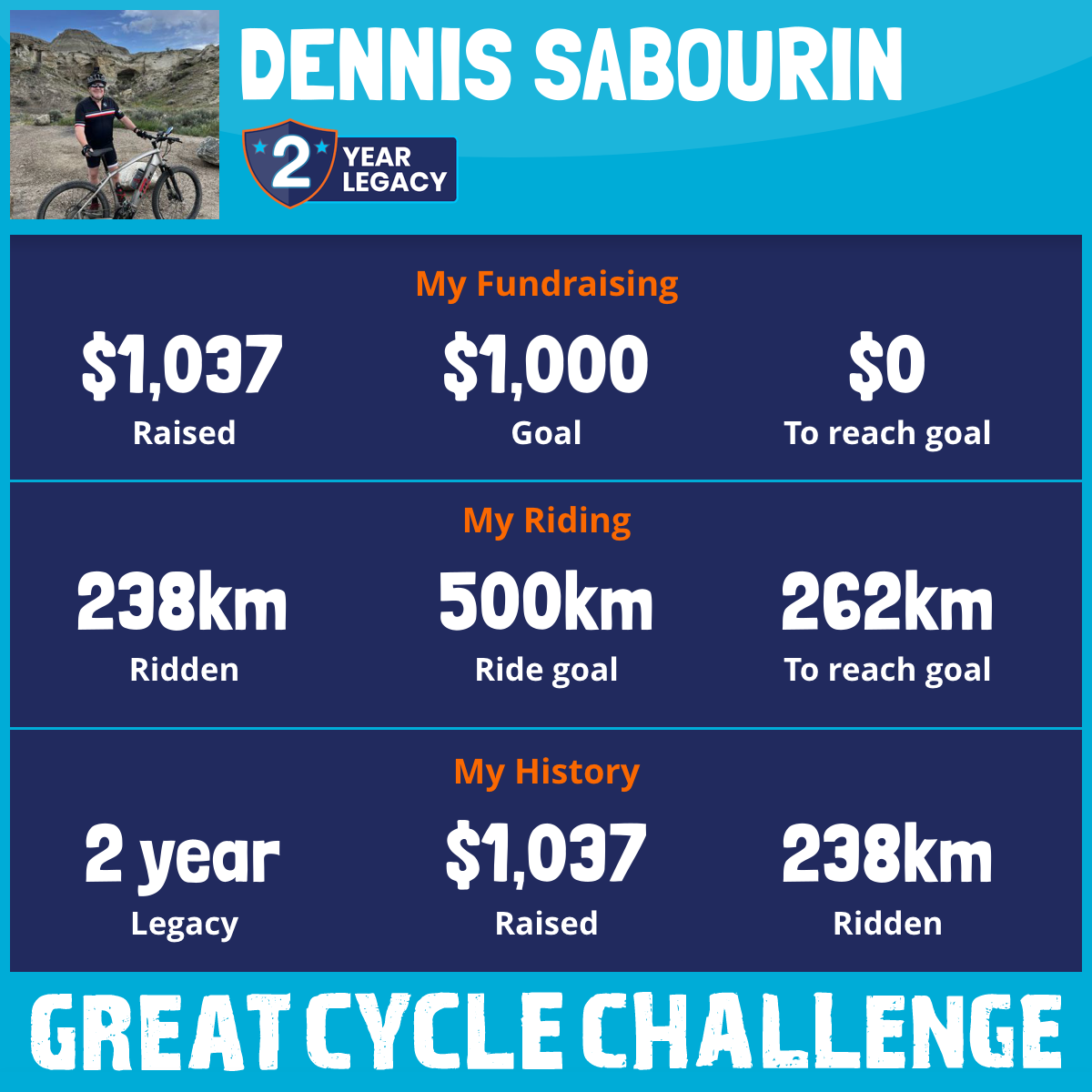 541 km Ridden$1,458 Raised2026