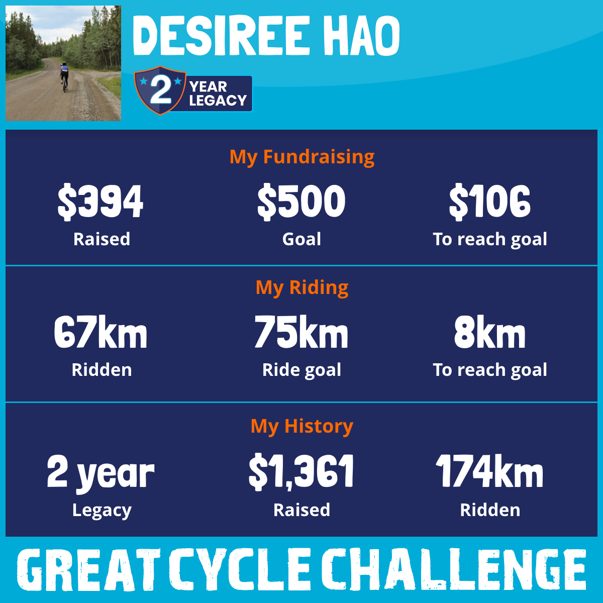 67 km Ridden$394 Raised2026