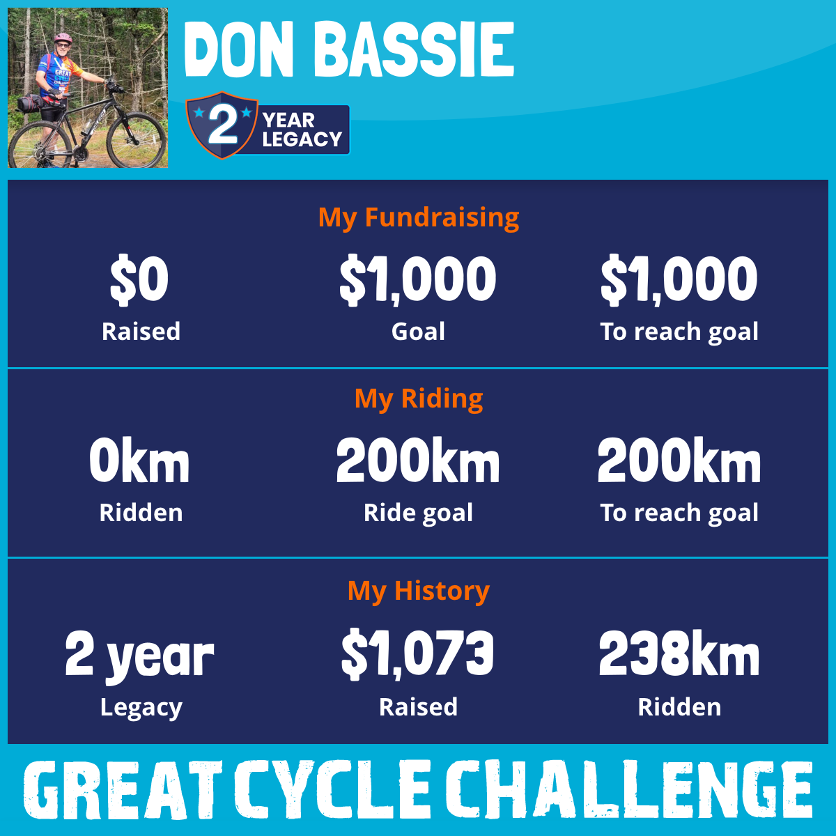 My good friend Rob has been courageously battling cancer for many years. Through it all, he has remained one of the most determined and active people I know. Even in the face of this relentless disease, Rob continues to work hard, live fully, and inspire everyone around him. Cancer may be doing its best to slow him down—but you simply can't keep Rob down. His resilience, spirit, and unwavering positivity are a testament to the strength of the human will. Rob shows us every day what it means to fight with grace, to push forward with purpose, and to live life without surrender. This August, I am riding for Rob—not just to honour his journey, but to support him and others like him in this ongoing fight.