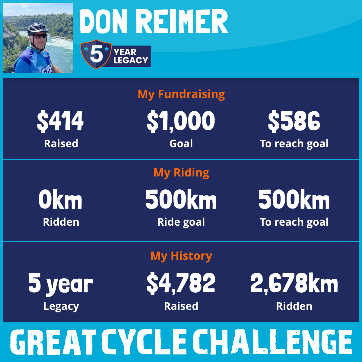 This is my fifth year in the Great Cycle Challenge to fight kids' cancer!