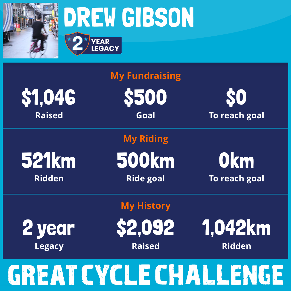 521 km Ridden$1,046 Raised2026