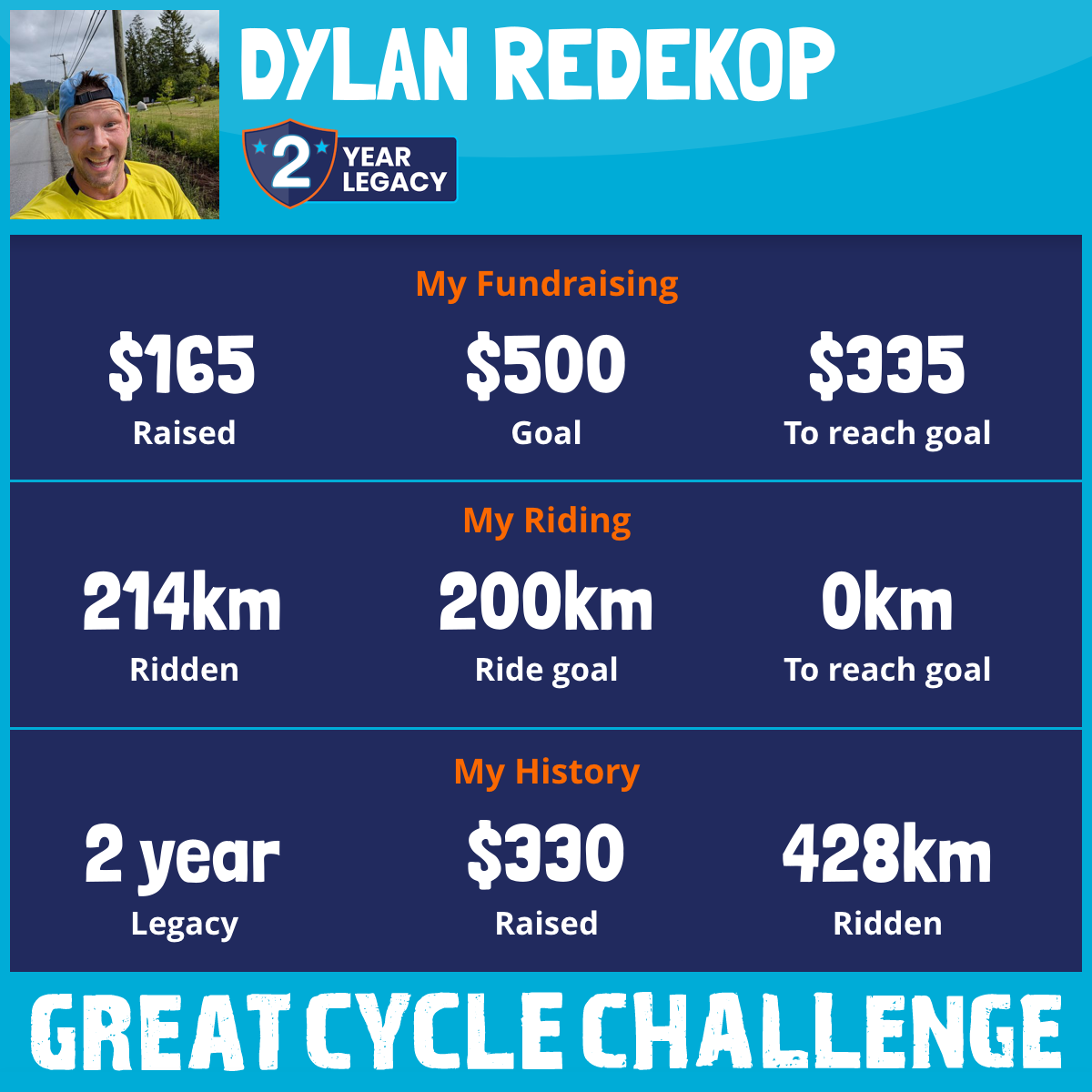 214 km Ridden$165 Raised2026