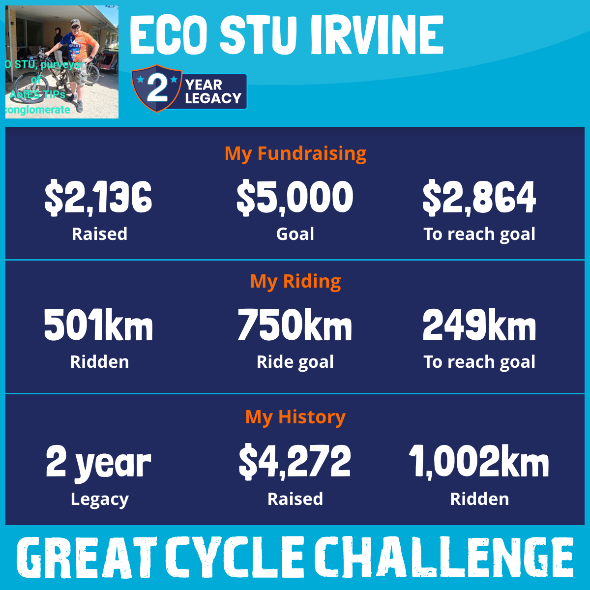 501 km Ridden$2,136 Raised2026