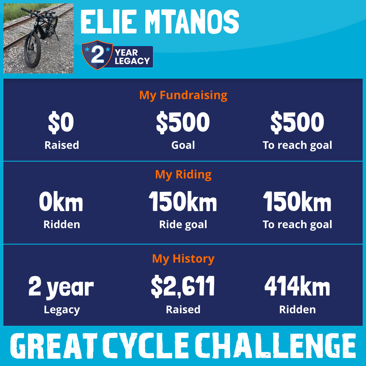 414 km Ridden$2,611 Raised2023