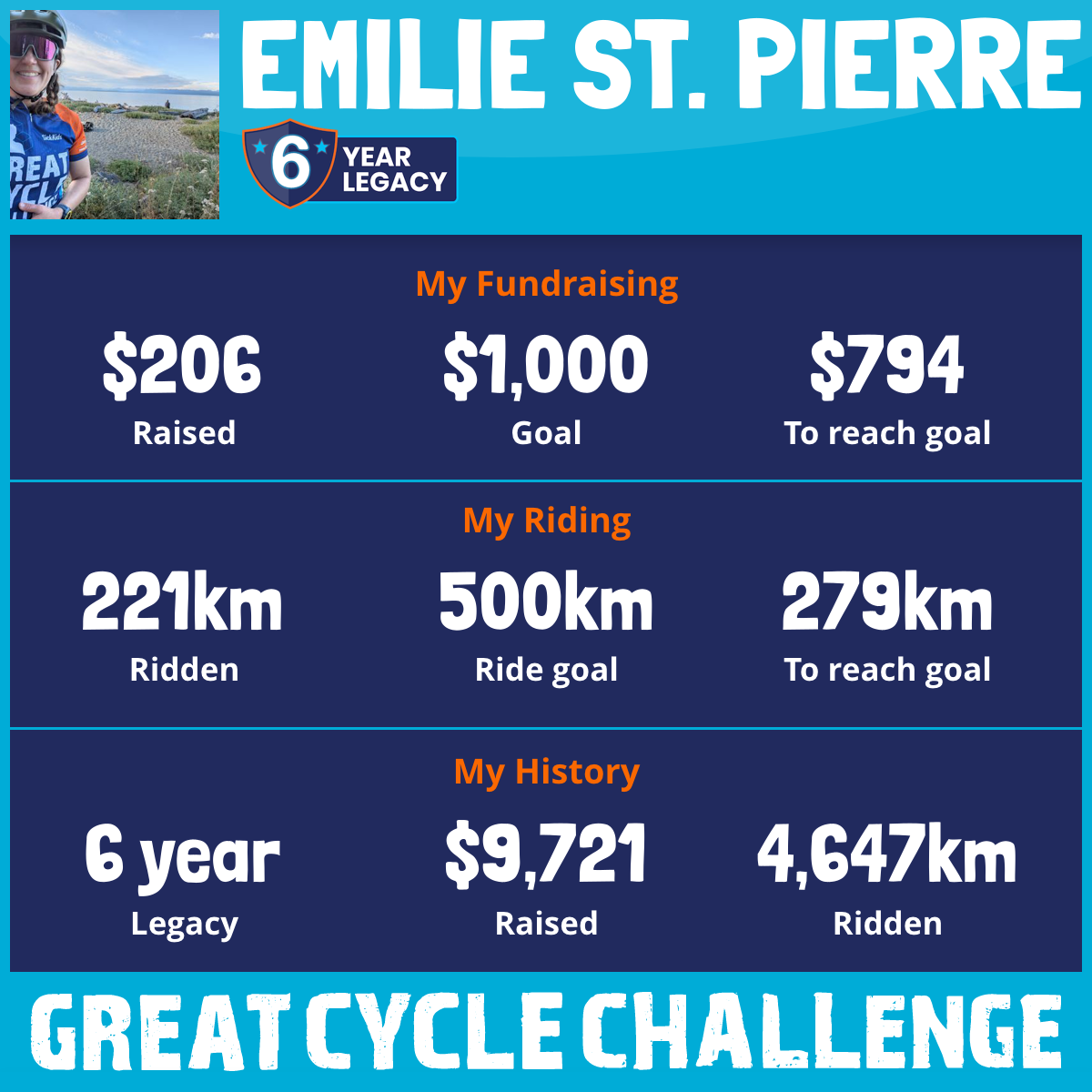 796 km Ridden$1,881 Raised2021