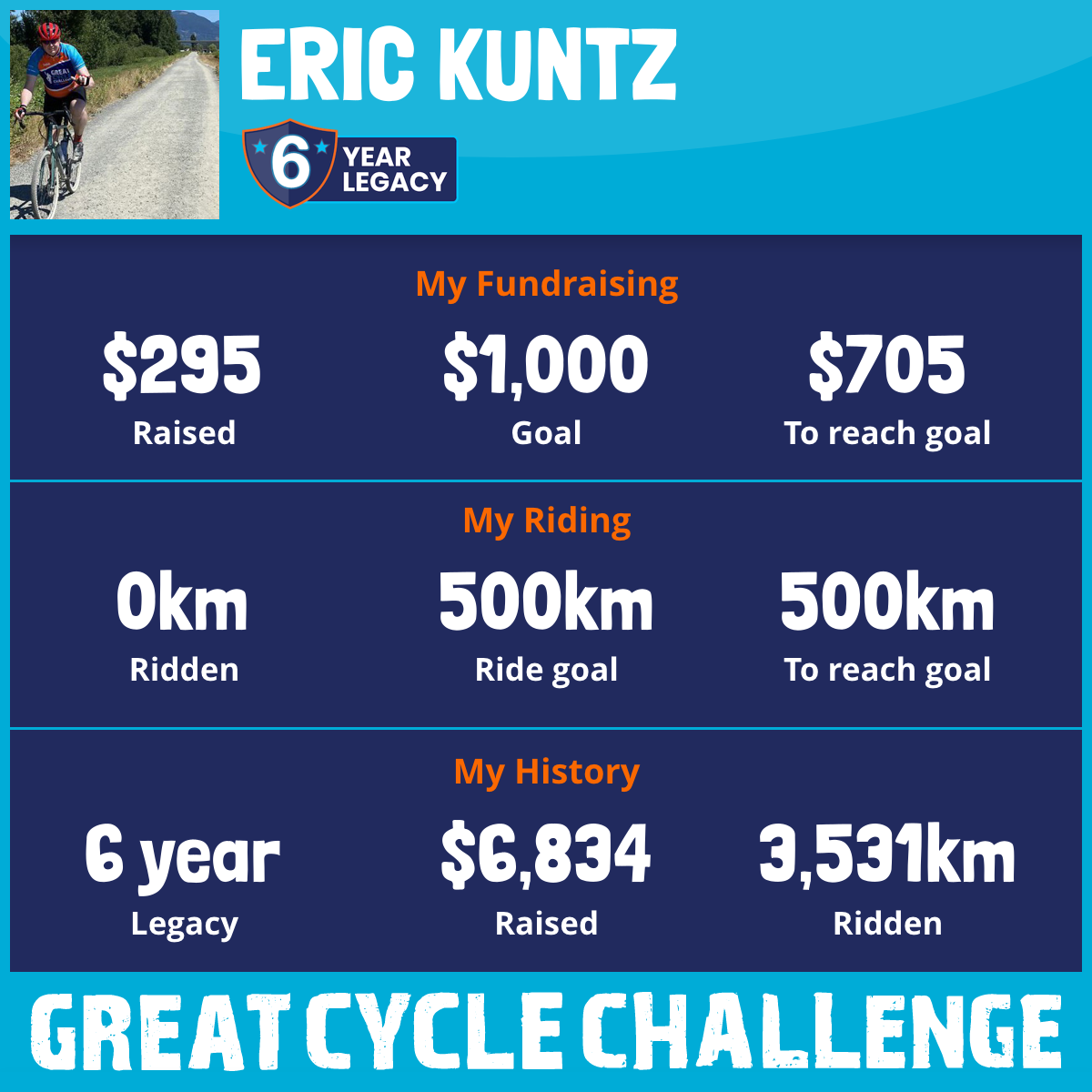 This August, I am taking part in the Great Cycle Challenge to fight kids' cancer! My base goal is $1000 and I have committed to ride 500km.