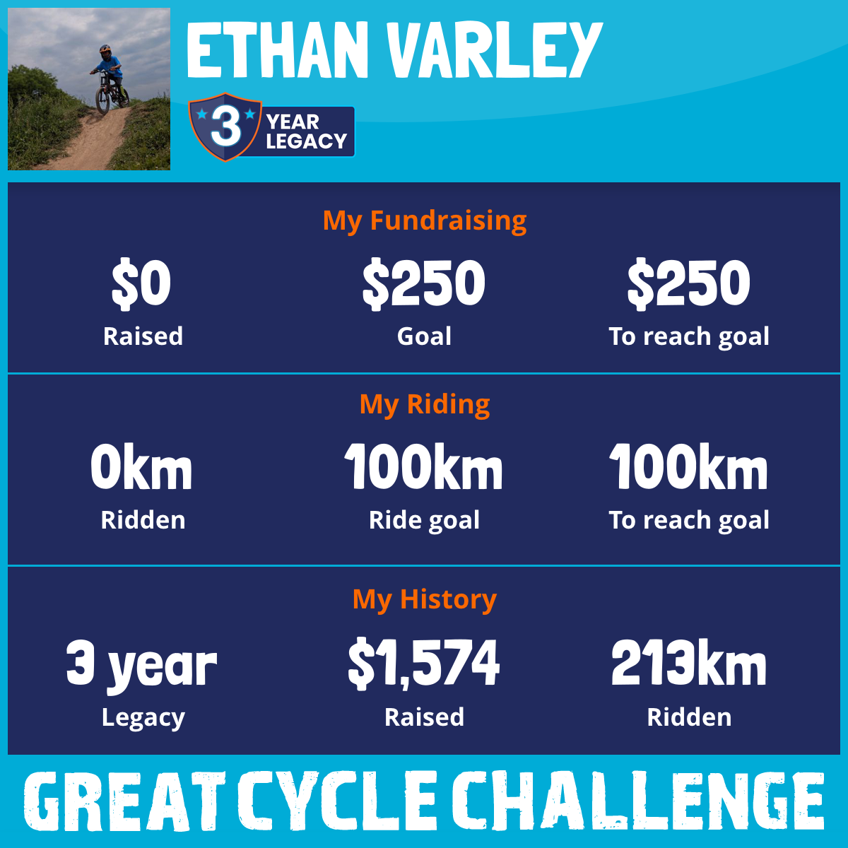 This August, Ethan is challenging himself to ride 100km (and fundraise $250+) as part of the Great Cycling Challenge, in support of Sick Kids Foundation and combating children’s cancer.