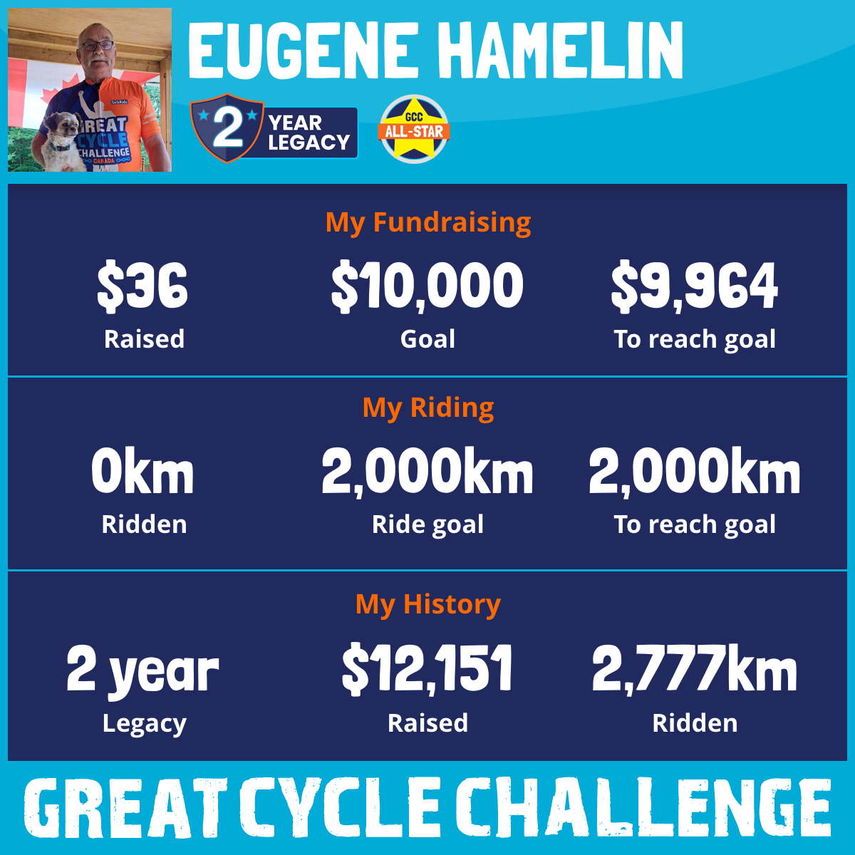 2,777 km Ridden$12,115 Raised2024
