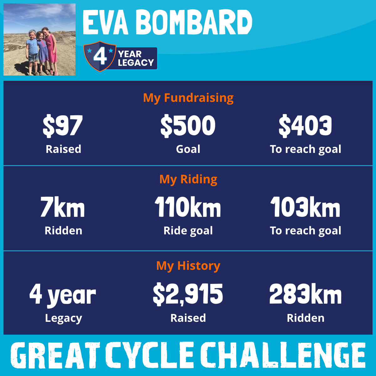 I have been doing the great cycle challenge for 3 years now. It keeps aryas memory alive and reminds me of all the fun things that I did with Arya.