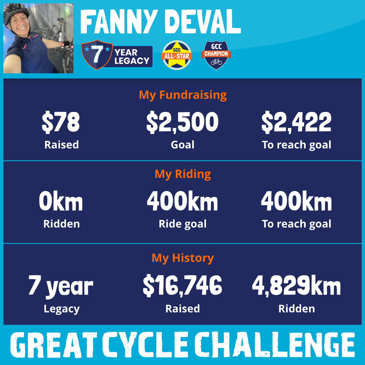 From 2017 to 2022 I rode 4,829km and raised $16,668 to give kids fighting cancer a better life!