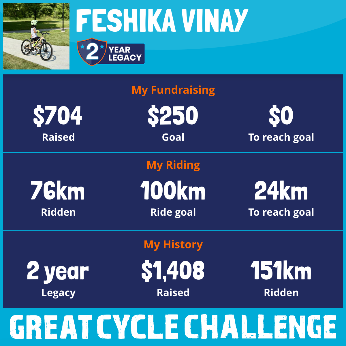 76 km Ridden$704 Raised2026