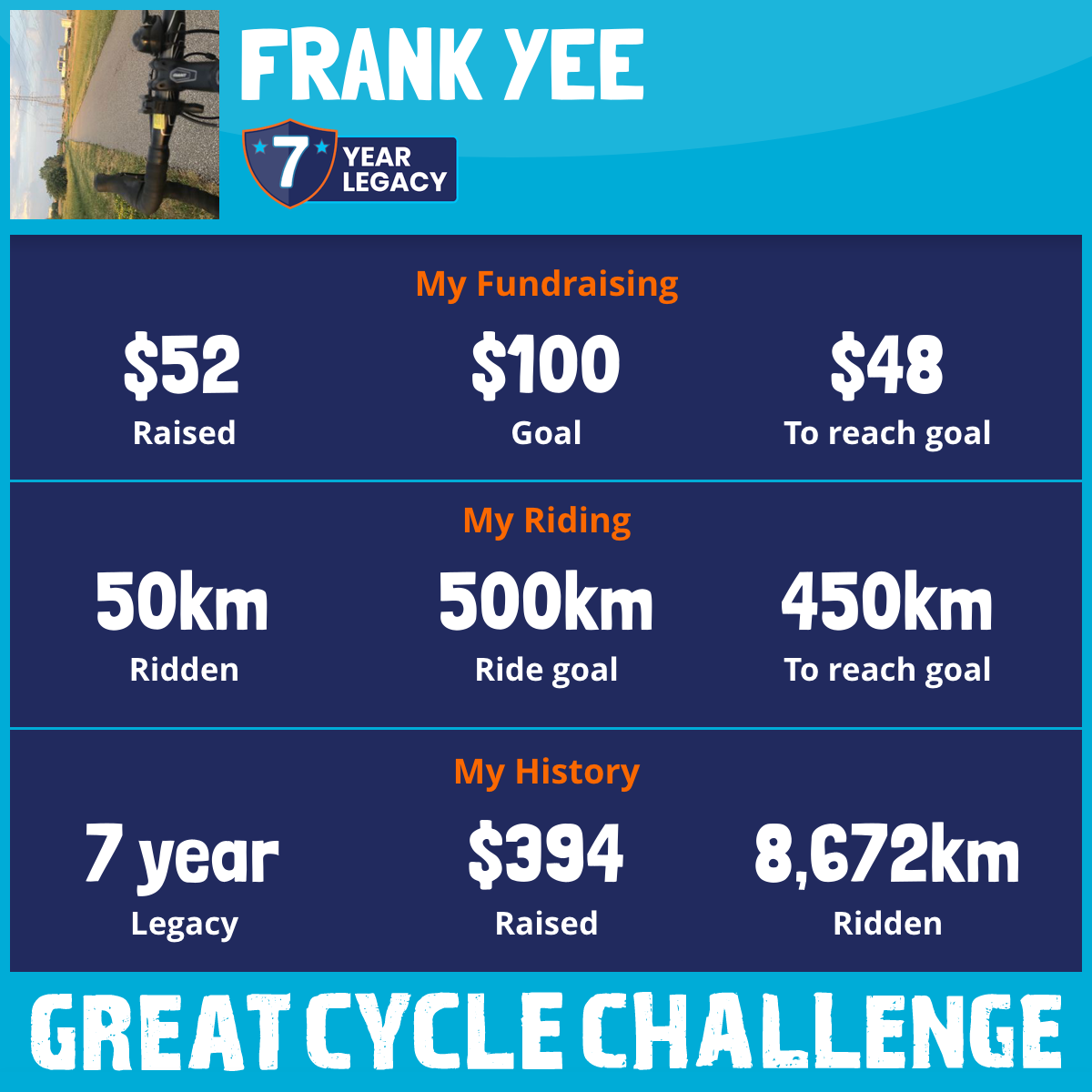 1,257 km Ridden$52 Raised2024