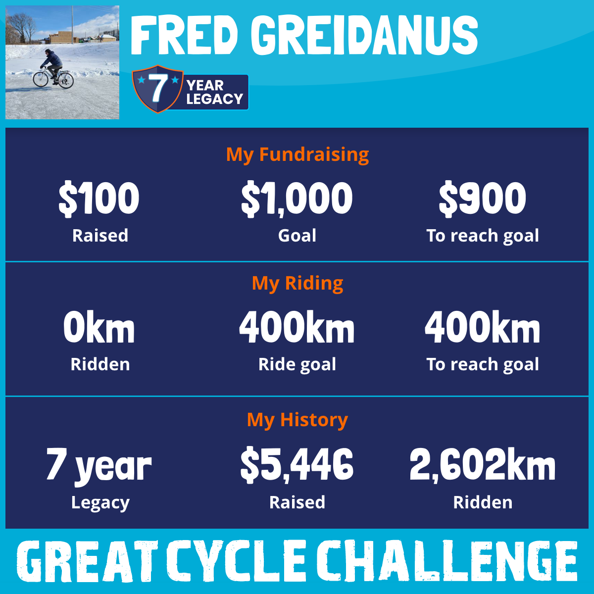 583 km Ridden$1,666 Raised2026