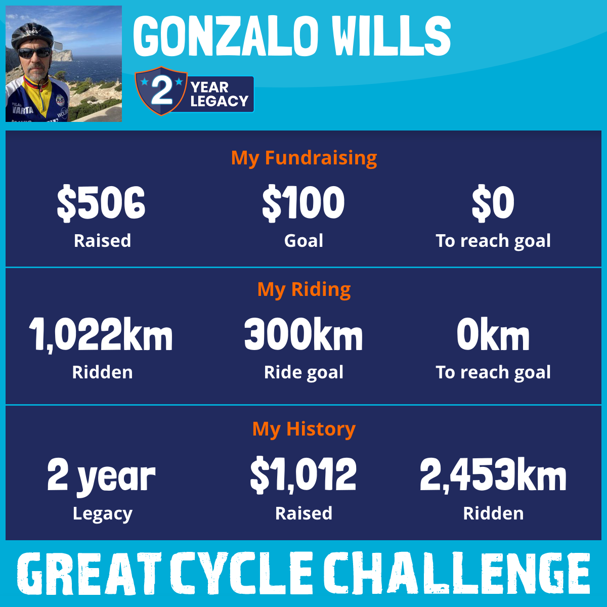 1,022 km Ridden$506 Raised2026
