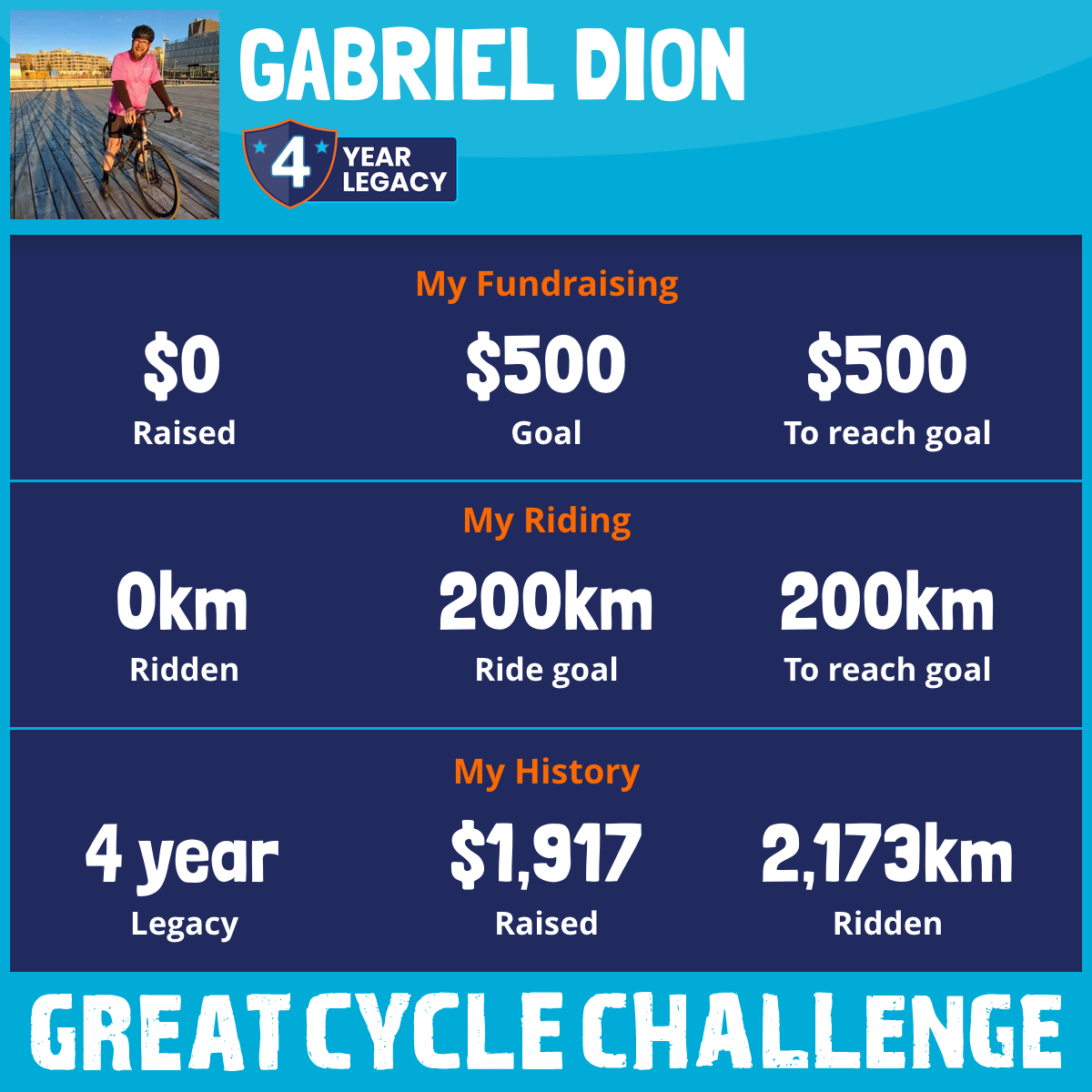 Je souhaite donner au suivant à ma manière en 2024. Je récolte des fonds pour une cause qui me tient à cœur, il s'agit de la fondation SickKids qui aide les enfants atteints du cancer. Les enfants devraient vivre et profiter de la vie, pas se battre pour survivre. Je vais donc utiliser mes grosses jambes et mon vélo pour rouler 800km durant le mois d'août et tenter de battre mon propre record personnel du même coup.