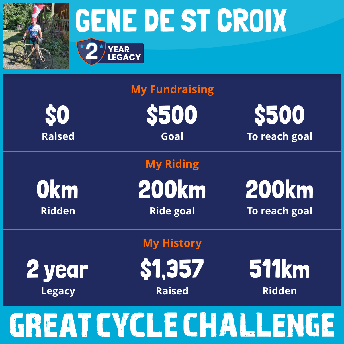 511 km Ridden$1,357 Raised2020