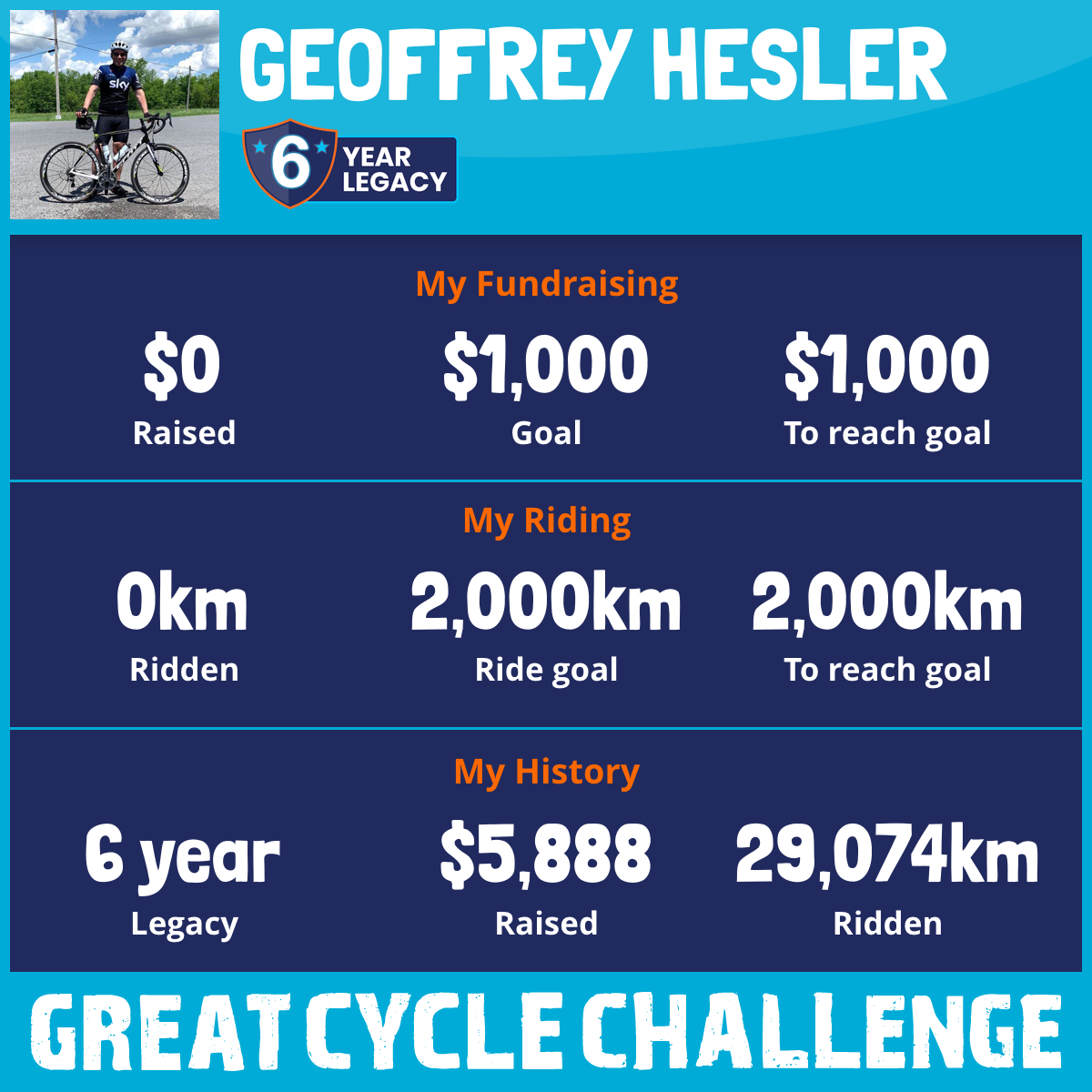 I am riding 2,000 km in memory of my friend, Gary and Monica. Please sponsor me and support my challenge to fight kids' cancer and save little lives.