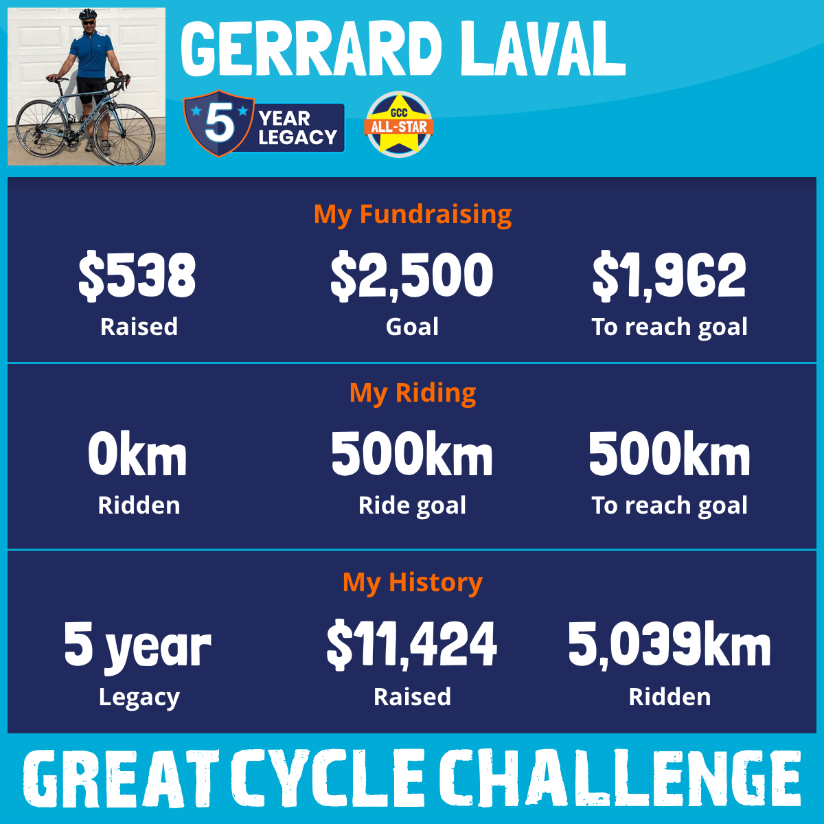 1,292 km Ridden$3,013 Raised2022