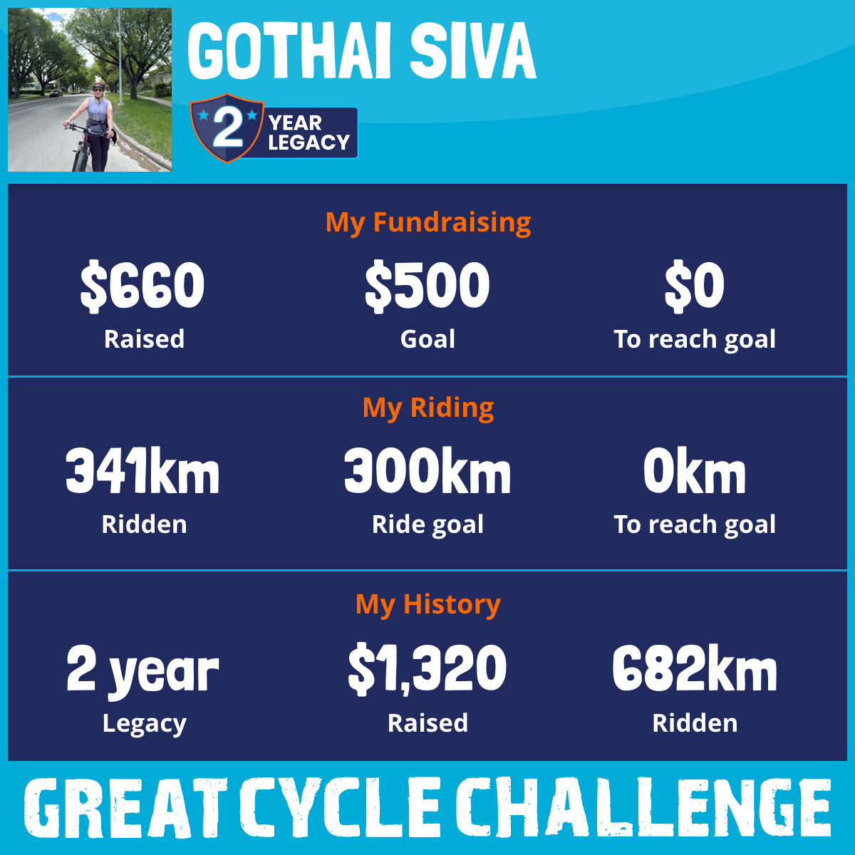 341 km Ridden$660 Raised2026