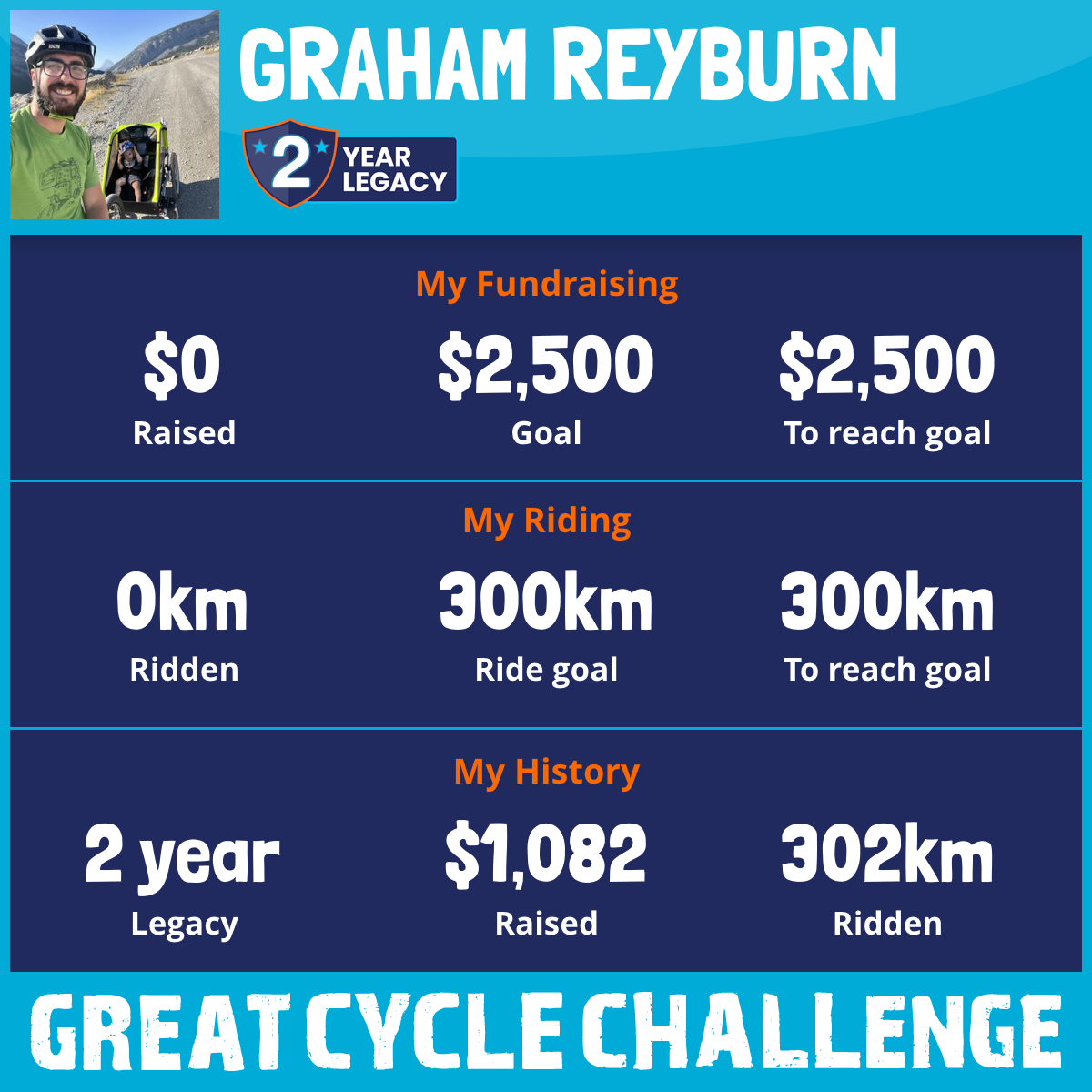 302 km Ridden$1,082 Raised2023