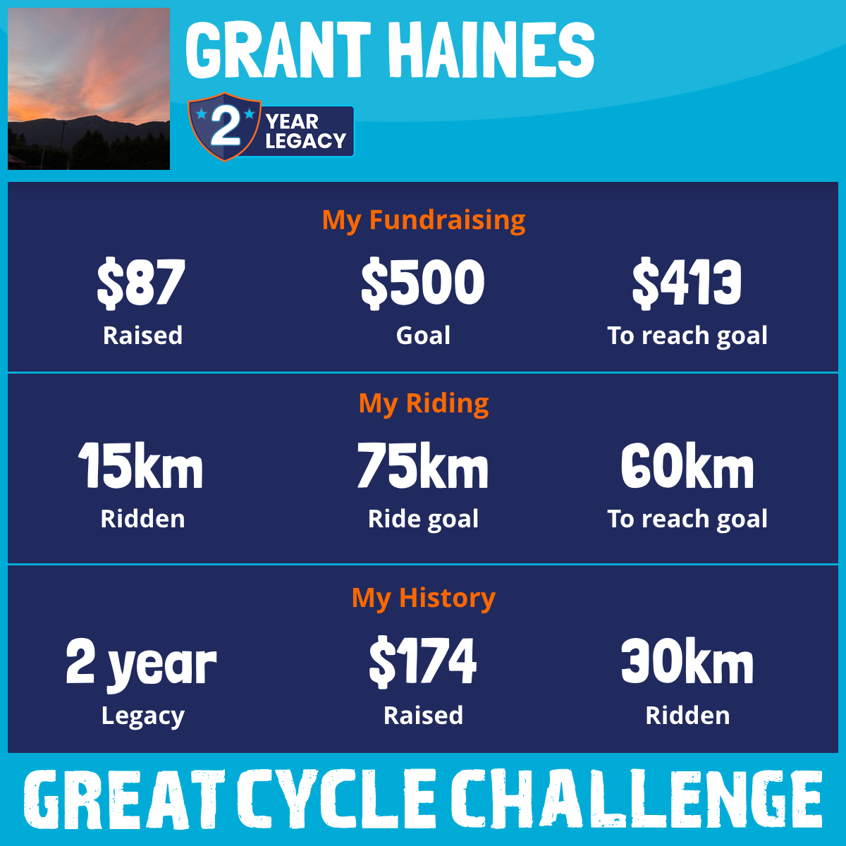 15 km Ridden$87 Raised2026