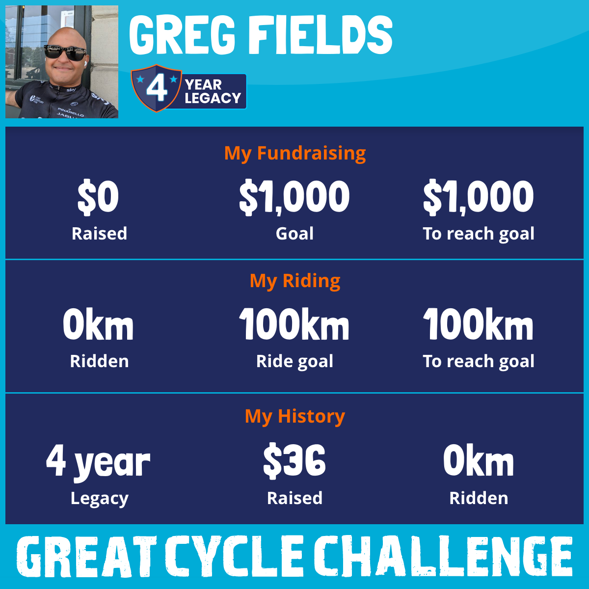 I've raised $0 My goal is $1,000 Donate Now