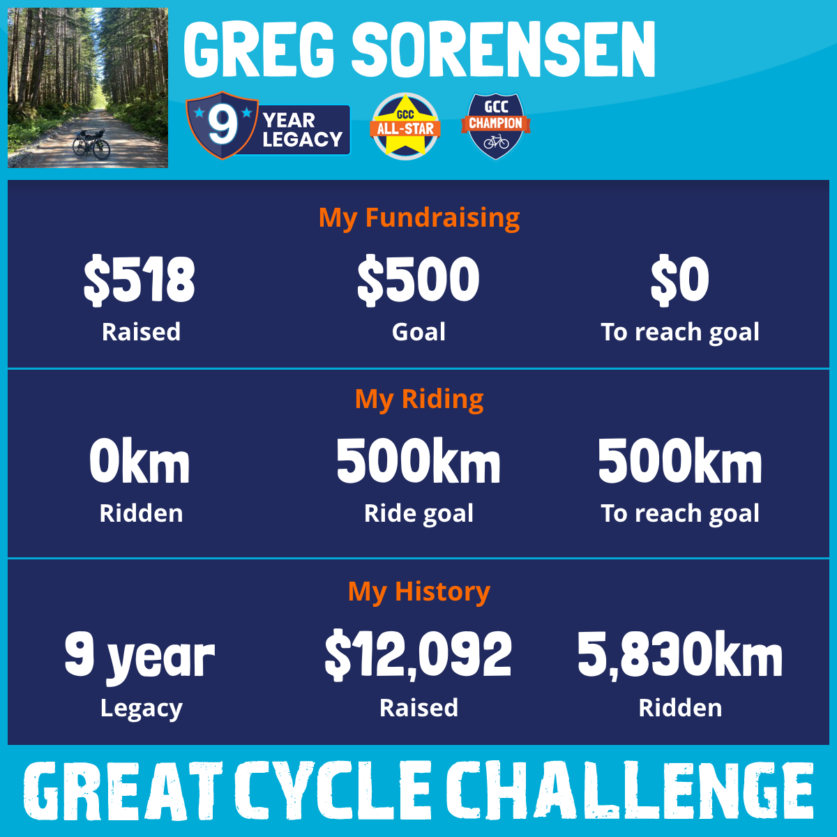 605 km Ridden$1,462 Raised2020