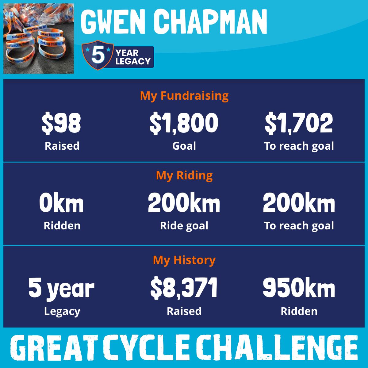 184 km Ridden$1,340 Raised2022