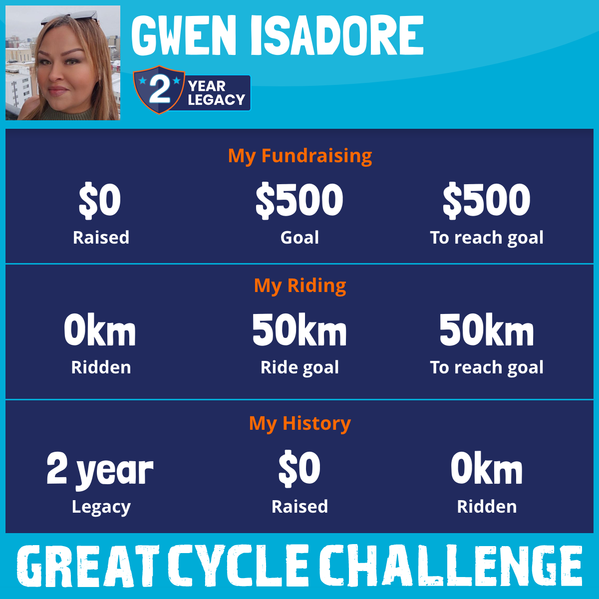 I am riding 50 km in memory of my daughter, Kihtawasoh. Please sponsor me and support my challenge to fight kids' cancer and save little lives.