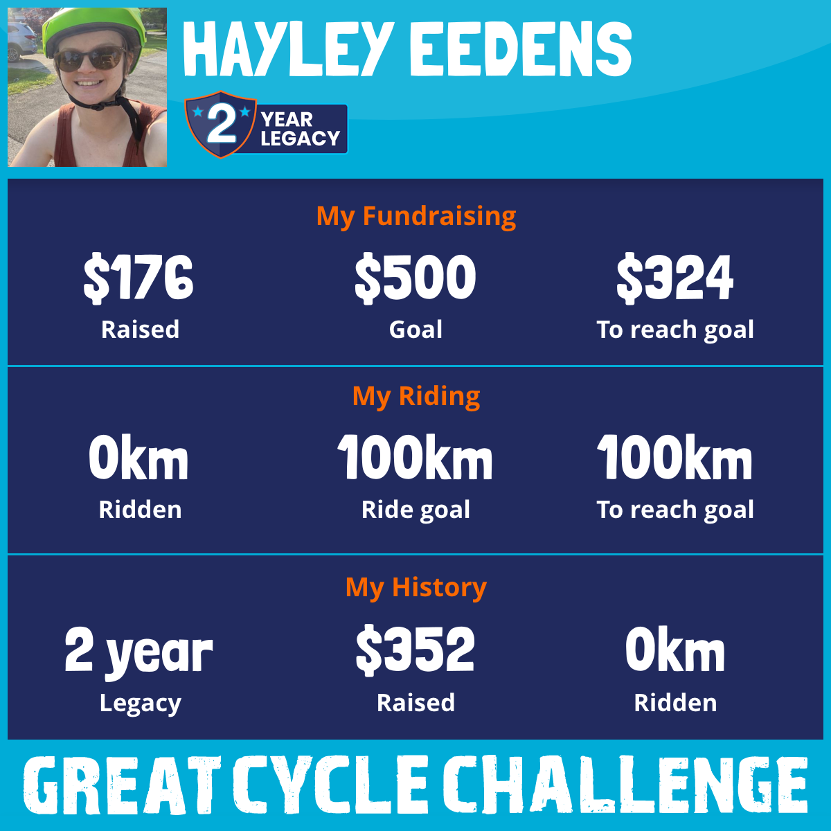 I am riding 50 km in memory of my loved one, Mum, Dad, Grandpa, Grandma. Please sponsor me and support my challenge to fight kids' cancer and save little lives.