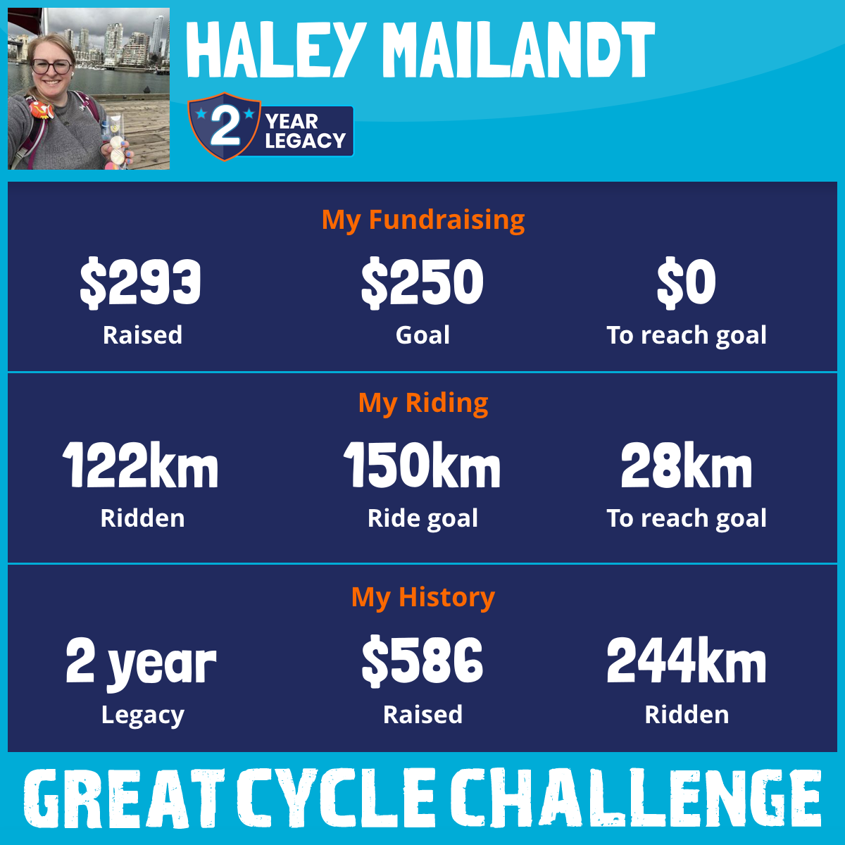 122 km Ridden$293 Raised2026