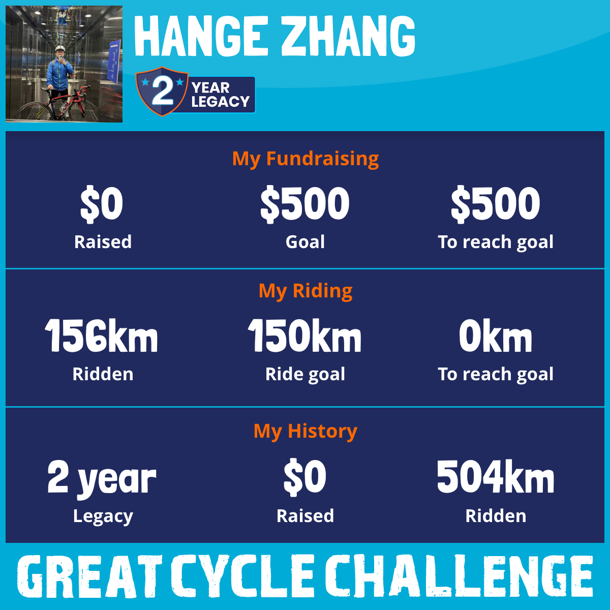 I am riding 150 km in memory of Guiqing. Please sponsor me and support my challenge to fight kids' cancer and save little lives.