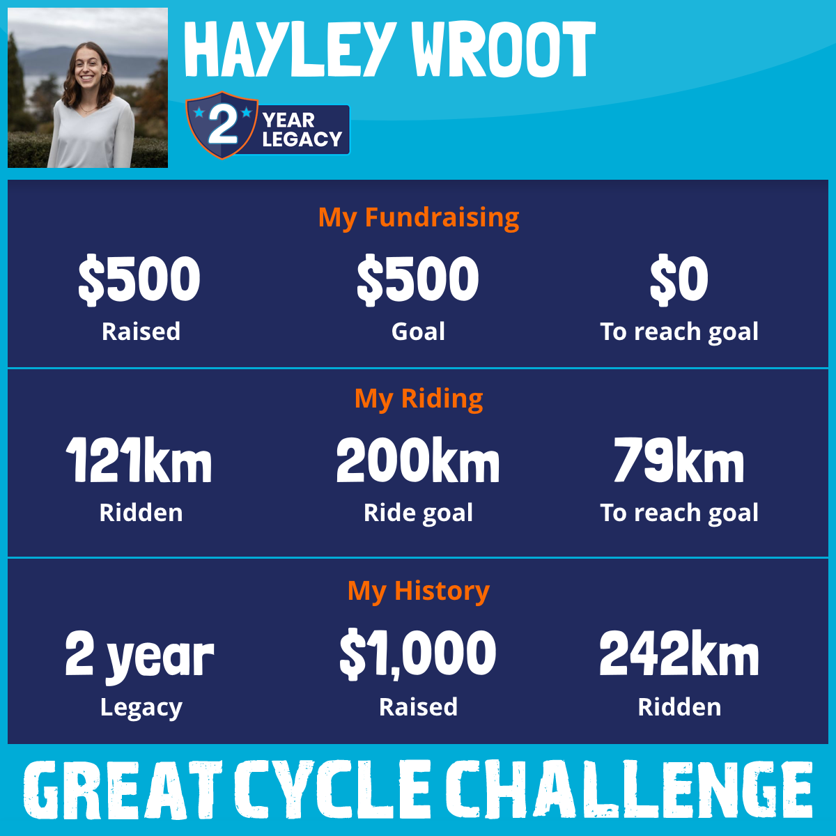 121 km Ridden$500 Raised2026