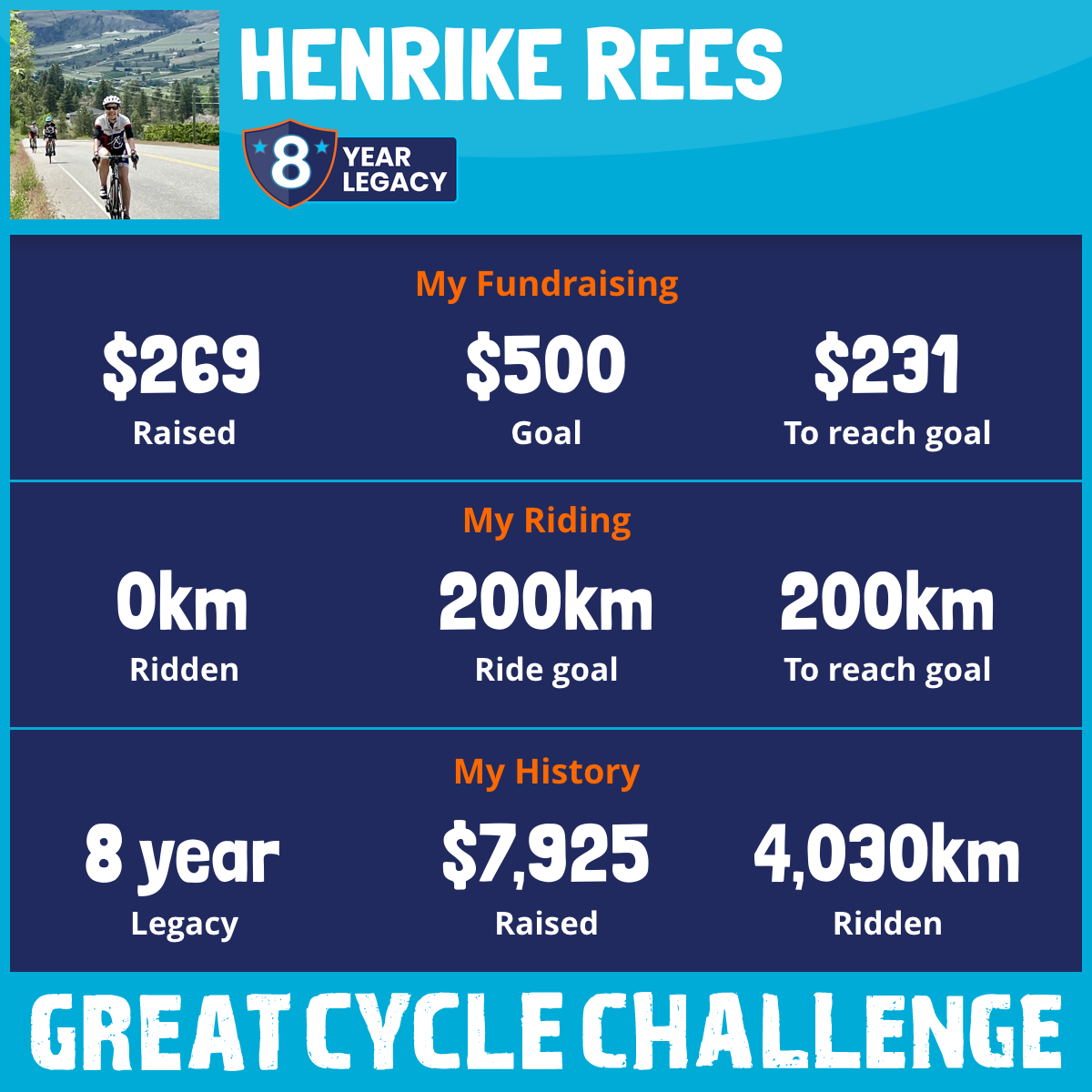 257 km Ridden$569 Raised2026